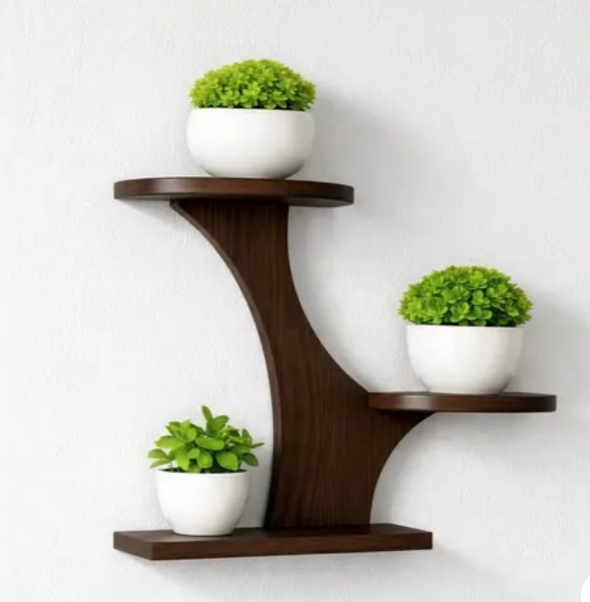Wooden Stylish Wall Shelf for Living Room, Bedroom & Balcony | Decorative Wall Mounted Floating Shelf for Home Decor, Plants & Pots