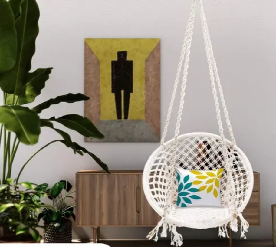 Patiofy Made in India Round Large Swing Chair with Free Hanging Accessories || Hammock Hanging Jhula for Indoor & Outdoor, Garden, Balcony || 100% Original Cotton Rope Used