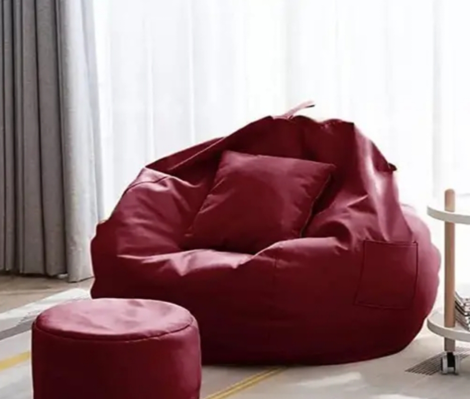 OHSTORE 4XL Bean Bag Cover with Footrest & Cushion (Without Beans) (Maroon, 4XL) COVER WITHOUT BEANS