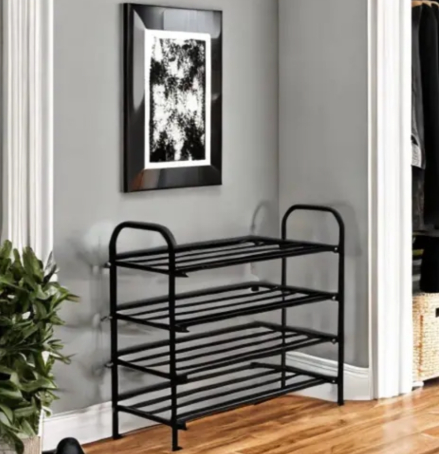 Shoe Rack 4 Shelves Durable and Multipurpose Metal Shoe Rack Shoe Stand Shelf Metal, Plastic Collapsible Shoe Stand (Black, 4 Shelves, DIY(Do-It-Yourself)