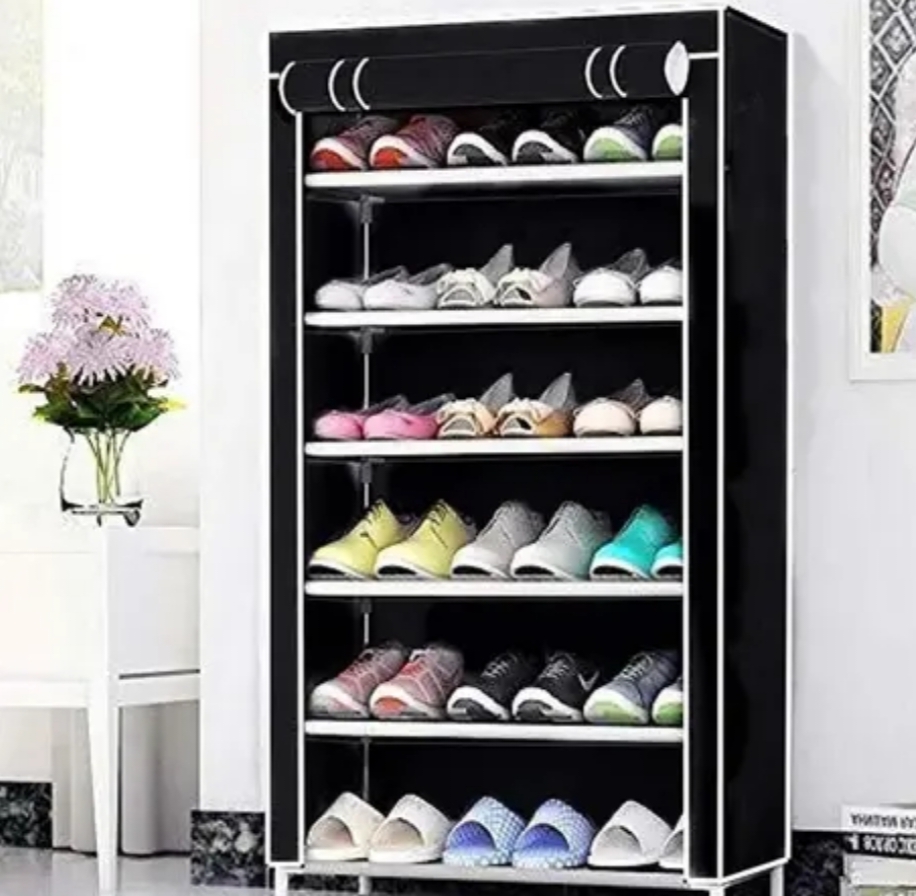CHOUXPRO Shoe Rack Organizer 6 Layer Utility Multipurpose Stand Storage Shelf Black Plastic