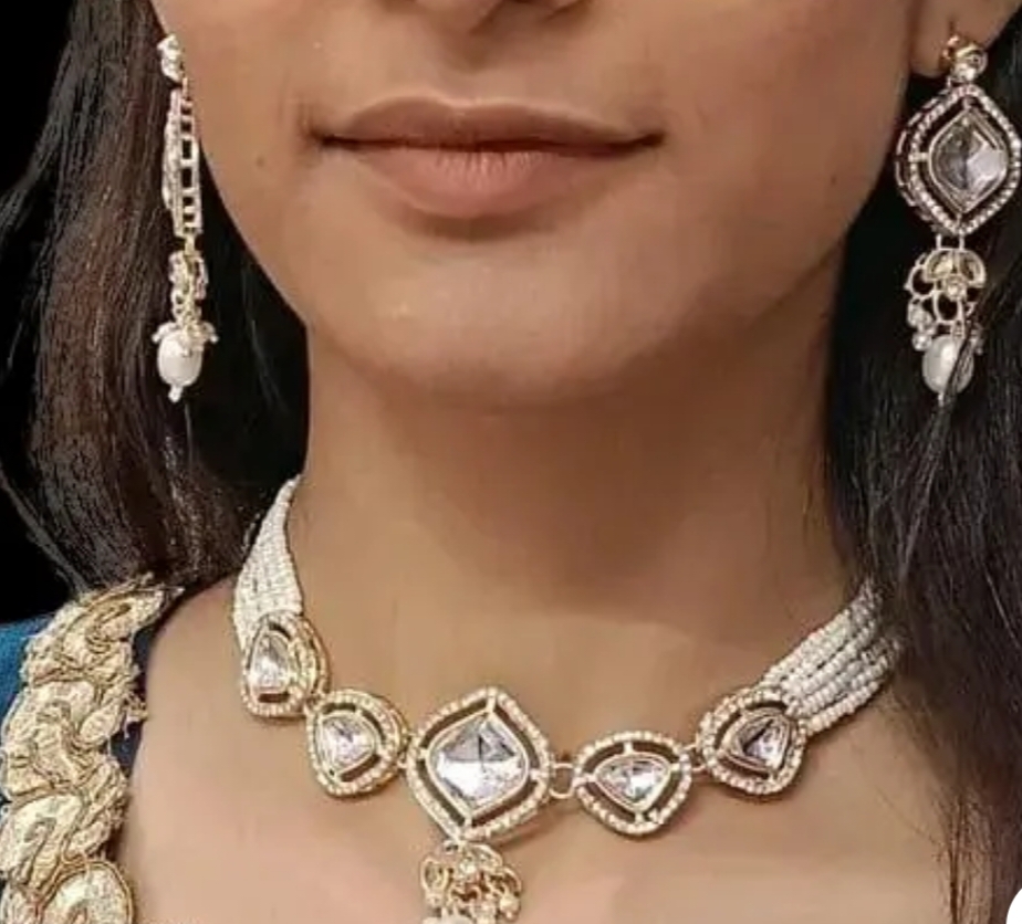 Kundan and crystal necklace choker set for women
