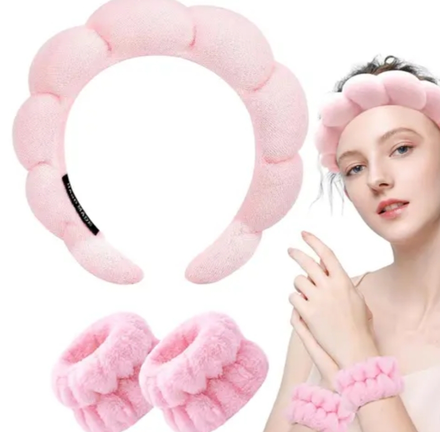 Spa Headbands for Washing Face Wristband Set Sponge Makeup Skincare Headband Wrist Towels Bubble Soft Terry Towel Cloth Hairband for Women Hair byandgalu Ideal for Women / Girls